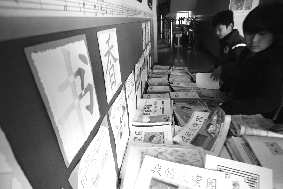 19日,在青岛市实验小学,各班将自己编制的图片做成书放在走廊上供同学们阅读。