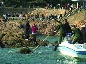 2007年6月13日下午,在第二海水浴场的这处礁石上,十几名拍婚纱照的青年男女,因专心拍照忘记潮汐,被困在距离岸边50多米的礁石上长达6小时之久。