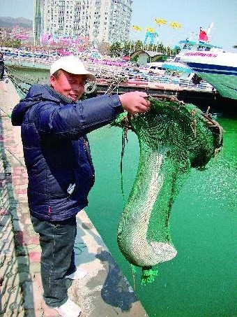 19日下午1时许,市民葛先生在威海海港边钓鱼时,意外钓到一条长约90公分、重十余斤的大鱼,引来不少市民围观。多年在海边钓鱼的张先生介绍说,这种鱼应该是鲈鱼,而这么大的鱼他是第一次钓到。