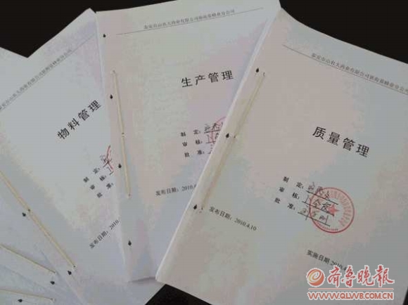 记者看到,这5大管理制度是质量管理、生产管理、物料管理、行政管理、岗位管理。每一项管理制度都有若干个规程,从目的到适用范围都根据国家相关标准详细地制作出规程。记者翻开生产管理制度的文本看到,物资采购供应管理规程要求,养蜂厂选择设立远离污染源、有良好、规范化的饲养管理、严格的工艺储藏条件。