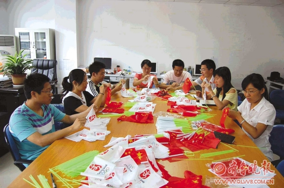 为了点燃泰城人民的热情,2008年7月16日起,随着奥运圣火在泰城传递日期的临近,本报联合山东欣升集团举办了“圣火传过来国旗飘起来”活动,本报记者走上街头,向车主、出租车司机、市民发放小国旗以及五环旗。
