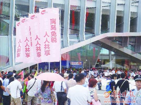 哪里是免税,简直是免费。潘峰惊呼了一声,便迅速被在店内“扫荡”的上百家媒体“逮住”,询问对离岛免税的看法。在潘峰的身边,来自国旅集团的导游李浩在分发旅行团能够享受的150元优惠券后,提议“大家来合个影”,但他得到的答复是“先买东西吧”。
