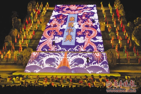 2010年5月,大型实景演出“中华泰山·封禅大典”在泰山东麓天烛峰脚下震撼上演。这里曾是秦始皇登泰山封禅御道的起点。夜幕降临,灯光打亮了远处巍巍的玉皇顶。在特殊的灯光效果下,有148级台阶的阶梯式舞台与远山连为一体,浑然便是帝王登泰山的台阶。秦始皇、汉武帝、唐高宗与武则天、宋真宗、康熙大帝,中国5个最强盛朝代的6位皇帝,依次登台。或威赫或祥和、或绚烂或雅致的封禅仪式,勾勒出中国历史的轮廓。500名演员,2400多个角色,5000套霓裳华服,中国不同时代的音乐和舞蹈,展示着不同时代中国的风貌和文化气韵。80分钟的演出,穿越了2000年的历史时空。