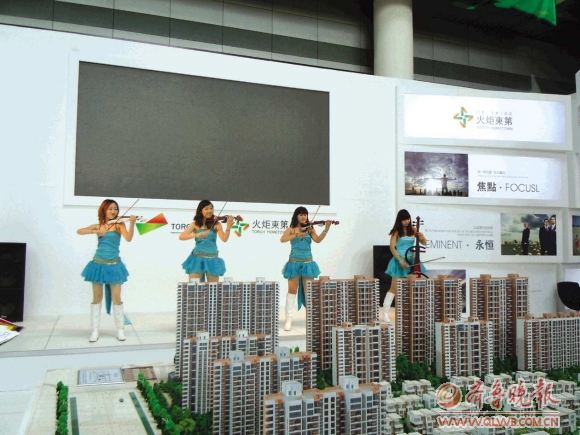 为吸引购房市民,不少开发企业在展会现场推出各种各样的互动活动和优惠措施,力图在传统楼市“红五月”来临之前,借助展会平台,率先启动市场。鲁能领秀城展会现场的精彩活动表演吸引了众多购房者的关注,使其驻足展位,人气大旺。火炬置业的美女小提琴演奏、沿海一楼盘的人体彩绘走秀更是吸引了众多市民在楼盘前围观拍照留念。