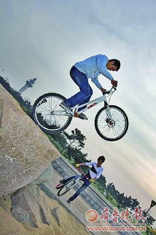 4月20日,在海边的一处大理石上,几名自行车攀爬爱好者正在练习。他们告诉记者,日照市参与自行车攀爬运动的人并不多,还处于起步阶段。据了解,自行车攀爬运动属于极限运动,高难度、挑战性强也让伤痛伴随着玩车者。 本报见习记者 冷炳豪 摄