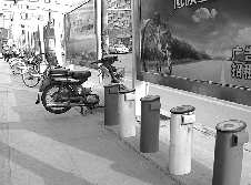 作品描述:一辆摩托车放错了地方,停在了公共自行车停车位上。