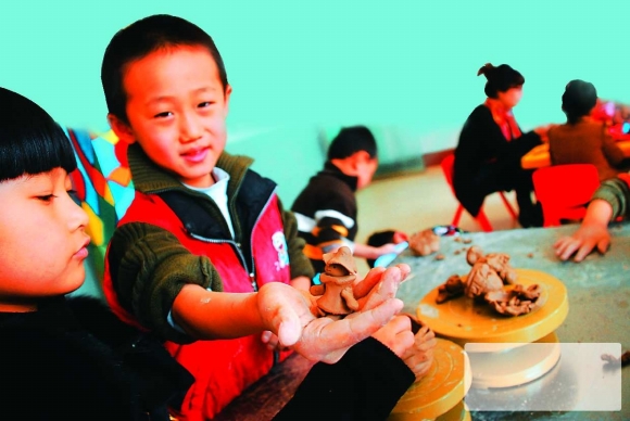 20日上午,东营市青少年科学工作室揭牌仪式举行,孩子们正在陶泥制作区展示自己的巧手,制作喜爱的物品。