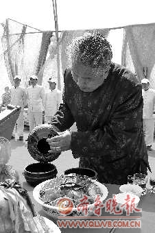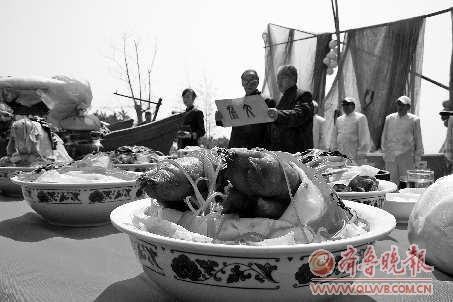 73岁的老渔民卞寿芳是活动的主祭司,据他介绍,自他记事起每年的谷雨节,大鱼岛村便有不同规模的祭祀活动。“这是渔民的春节。”卞寿芳说,近几年的谷雨节变得越来越隆重,渔民自发组织的热情也越来越高。在祭祀现场,记者看到,渔民们还自编自演各种文艺演出,让现场观众看得津津有味。憨厚的猪八戒、机灵的孙悟空、各显神通的八仙,渔民们把他们都演绎得活灵活现。祭祀进入尾声时,附近村子的织网能手齐聚在祭台上,比质量、比速度。勤劳的胶东妇女将手中的梭子舞得上下翻飞。