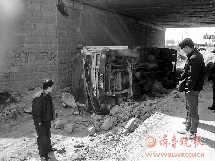 19日,一中型箱式货车行至文登宋村镇的一公路立交桥下时,由于没有注意到桥洞中两侧路面的落差,不慎发生侧翻。民警提醒广大驾驶员,桥洞一般高4米,但为了保证超高车的顺利通过,一般桥洞都设计有一定的高低落差,希望司机过桥洞时多加注意,以防发生意外。