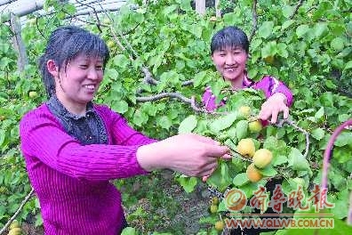 21日,在长清区万德镇店台村果农赵明炎的大棚内,黄澄澄的“金太阳”杏,着实让游客高兴了一把,据了解,大棚果树已成为该村群众致富增收的主要来源。