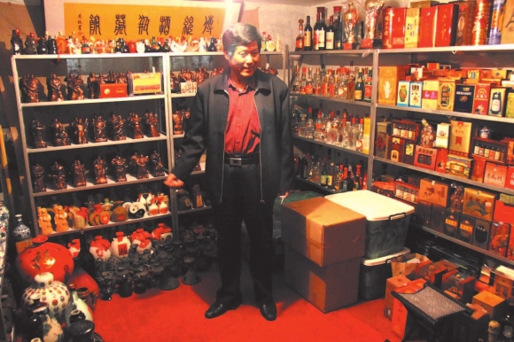 李传统今年63岁,收藏年龄12年。收藏酒瓶,是起于一个朋友的玩笑话。