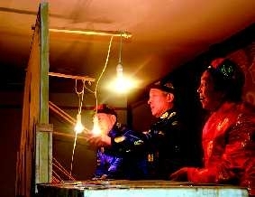 春节期间的毓璜顶庙会上,三位老艺人正在表演皮影戏。 张卓