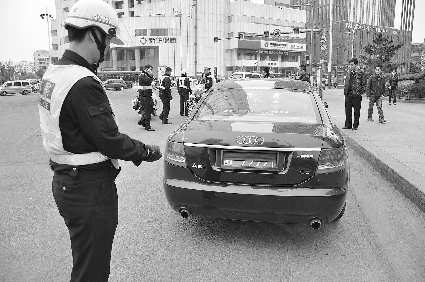 21日8时,正值交通早高峰。一大队执勤民警张警官在市区解放路与三马路交叉口执勤时,发现一辆无牌奥迪车停在路口等红灯,他立即示意该车靠边接受检查。