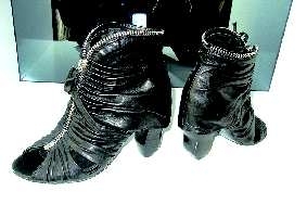 这是一款设计非常独特的罗马鞋,它不同于传统式的缠绕式罗马鞋,采用了独特的拉链式精致的皮革,看起来简约而大气,跟部的设计更是焦点,不规则的流线型,小巧而俏皮。图片②