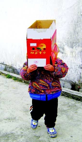 作品描述:一个小男孩把装水果的纸箱罩在头上,向路人说自己是“变形金刚”。