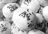 5、在油酥皮中间放少许豆沙,再放半个咸蛋黄,再放少许豆沙;像包包子那样收口捏紧,以免烤时底部爆开,开口朝下放在烤盘上;在蛋黄酥上面涂两遍蛋黄液,顶部洒上少许黑芝麻,即入烤箱烘烤。