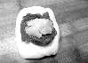 将一个油皮剂子按扁,中间放入一块油酥,用油皮把油酥包起。包好之后压扁,折三折。