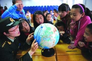 4月22日是世界地球日,21日,在桦川路小学,同学们在科普课上学习地球知识。当日,青岛海警二支队官兵与学校师生开展爱护地球主题活动,一起制作环保手抄报展板,呼吁人们保护环境、善待地球。本报记者 张晓鹏 摄影报道