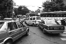 旅游旺季,沿海一线的交通往往因为外地大巴的随意停放造成混乱、拥堵。 本报记者 张晓鹏 摄(资料片)