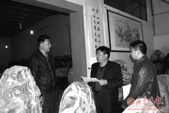 在小井奇石市场、步天苑奇石市场以及羊西奇石市场等主要奇石销售点,工作人员深入每一家经营业户,座谈了解情况,宣传相关法律法规,并在奇石市场显著位置张贴了关于泰山石保护及奇石市场综合整治工作的通告。工作人员对奇石市场外存放的奇石,依法进行登记,分别编号并建立了档案;对无证经营及超范围经营的业户进行了查验登记。