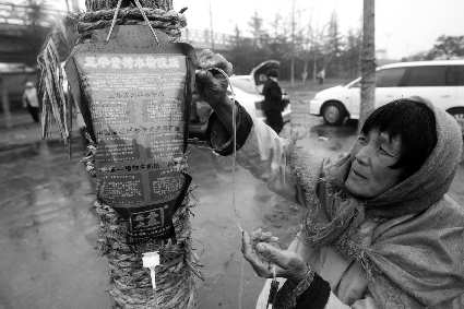21日上午,在临沂滨河景区,工作人员正为河边的小树打点滴,输送营养。据介绍,今年天气干旱,土壤中的水分、养分不足,景区不少树木都出现了枯枝、未发芽等情况。为使这些树木茁壮成长,园林局组织工作人员通过人工打吊瓶的方式给树木补充营养及水分。