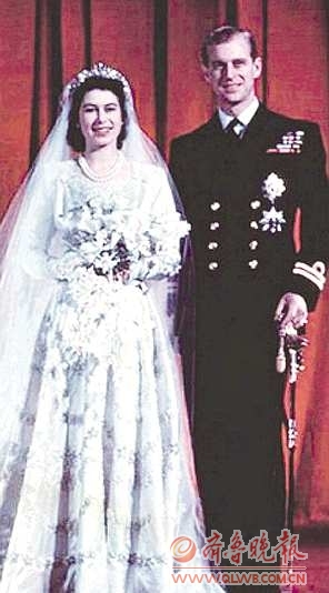 现年85岁的英国女王伊丽莎白1926年生于伦敦,原名为伊丽莎白·亚历山德拉·玛丽,是英国温莎王朝第四代君主、英王乔治六世的长女。1947年7月9日,她与远房表兄、希腊和丹麦亲王菲利普·蒙巴顿中尉(现为爱丁堡公爵,菲利普亲王)订婚,同年11月20日结婚。当时二战刚刚结束两年,英国还没有走出战争阴影,就连英王乔治六世自己都觉得女儿的婚礼可能不合时宜。不过,当时婚礼的承办者向乔治六世写了一封充满幽默感的信,信中写道:在您女儿的这场婚礼上,如果您想看到和她地位相衬的排场和奢华,那么,您会失望的。最终,乔治六世答应了女儿的婚礼。