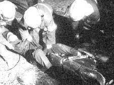 消防人员在现场看到,这名男子左脚被摩托车后轮绞住卡在了链盒处。消防人员利用扳手将摩托车后轮的减震部位卸开,然后用扩张器对后轮与链盒部位实施扩张。几分钟后,这名男子的左脚终于出来了。