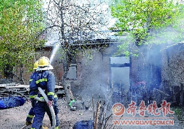24日清晨,金乡县鱼山乡某村一民房突发大火,由于房内存放着大量的稻草、木材等易燃物,火势蔓延迅速,危及毗邻房屋。金乡消防大队接警后迅速出动,半小时后,大火被成功扑灭。