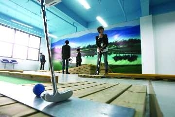 23日,福州北路上一家新开的室内高尔夫球馆吸引了不少年轻人一试身手。据了解,室内高尔夫球又称迷你高尔夫,是由多个不同难度的球道组成。与户外的大型球场相比,消费要低得多,每小时60元左右。