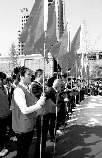 在当下全市争创全国文明城市、国家卫生城市决战决胜之际,罗庄区于23日启动了创建全国文明城市“红马甲”志愿服务行动,旨在配合全市“两城同创”的统一步伐要求,大力弘扬“奉献、友爱、互助、进步”的志愿精神,不断加强和完善志愿服务体系建设,切实发挥志愿服务在“文明罗庄”建设中的积极作用。在行动启动仪式现场,清洁、社区、交通等21支身着红马甲的志愿者服务队负责人依次接过队旗。仪式结束后,300多名志愿者分别来到各自指定区域,正式展开了此次行动中的街头清洁、法律咨询等志愿服务活动。