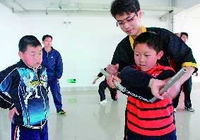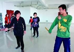 短,还无法学习“舞花”,只能学习简单的“流星赶月”。由于学生太多,王国伟忙不过来,同样有双截棍经验的本报实习生付文学也当了一回老师,教大人们“舞花”。