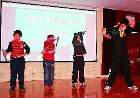 向,而双截棍也时不时敲到脑袋。尽管很疼,孩子们依然坚持学会每一个动作。来自竹岛街道办事处金线顶社区的徐红波女士是所有读者里学得最快的,不用1分钟就掌握了基本要领,而且越耍越熟练。