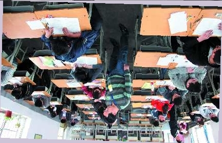 图为24日,考生在枣庄市第十五中学考点参加2011年山东省公务员招录考试。
