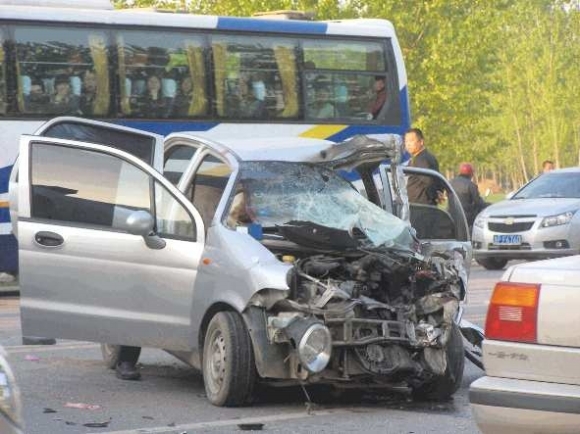 24日下午,在城区北环路中段,一辆运输蔬菜的微型卡车与一辆银灰色QQ轿车迎面相撞。记者在现场看到,3人当场死亡,至少有2人受伤。事故原因还在调查中。 本报记者 摄影报道