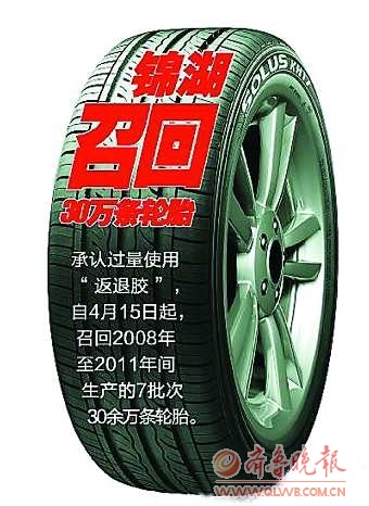 即使如此,在车展中关注锦湖召回的参观者并不少,对汽车业熟悉的沈先生说:“车展上好像使用锦湖轮胎的整车少了一些,虽然是中国首次轮胎召回事件,但问题轮胎会影响到产业中整个轮胎品类,甚至影响到对整车的信誉。”