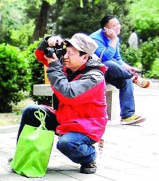 自述:前者端着相机拍照,后者拿着手机开