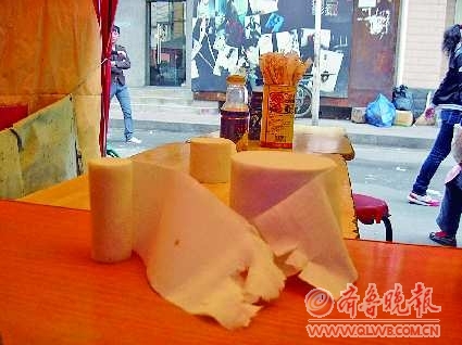 在一些小吃摊和饭店,卫生纸被当作餐巾纸用。 吴金彪 摄