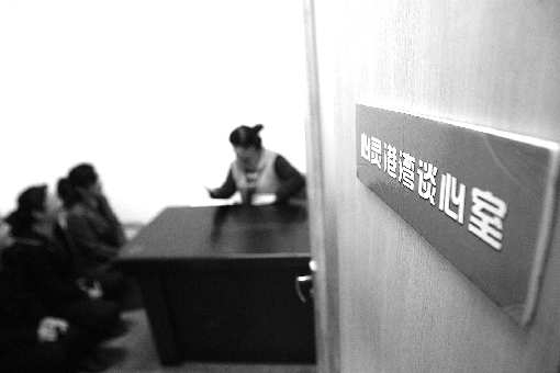 25日,在毓东社区心灵港湾谈心室,居委会工作人员正和社区居民谈心。随着人们生活水平的提高,心理问题已被越来越多的人们关注和重视。针对社区居民容易出现的问题,比如邻里矛盾,家庭矛盾等,毓东社区创办了心灵港湾谈心室,从多方面为居民提供有效的心理帮助和服务。