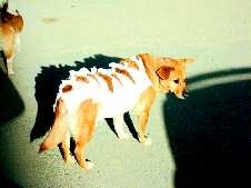 作品描述:一只大黄狗刚做完手术“出院”,一脸忧郁。