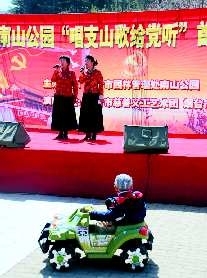 拍摄时间:4月16日拍摄地点:烟台南山公园作品描述:南山公园举办的“咏梅歌会”上,两位演员正在激情歌唱,一个小朋友开着自己的电动玩具车来到台前,看得津津有味。相机型号:尼康D80作者:房泽泉奖金:20元