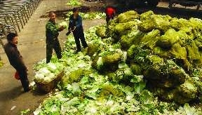 记者了解到,农业合作社与蔬菜加工、出口企业有合作的“订单菜”不愁卖,菜农自己种植的蔬菜则容易滞销。在平度市蓼兰镇杨家顶子村,菜农杨同光今年种了10亩大葱和6亩大白菜,“大葱1毛钱1斤,白菜5分钱一斤,都没有人要。”杨同光说,白菜是开春才种植的大棚菜,每斤卖4角钱才不亏本,照现在的行情雇人收菜都亏本,只能把白菜直接翻在地里。该村种的700多亩白菜和大葱大多滞销,但去年的1000亩菠菜和大葱销售一空。“去年是村里的合作社和胶州一个蔬菜出口公司签订了协议,根本不愁卖,今年与公司解约后,我们种的菜不好卖了。”杨同光说。