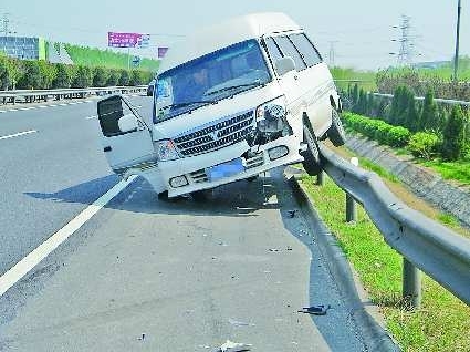 22日14时,一江苏籍驾驶员由于疲劳驾驶,驾驶一辆白色小型面包车撞上了京台高速护栏,幸亏刹车及时,没有造成人员伤亡。