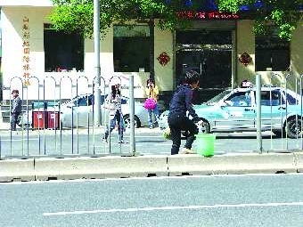 26日,记者在泺源大街看到,银座商城公交站牌前马路中央护栏不知为何开了个口子,不少人图省事,不走近在咫尺的过街天桥,直接从这个口子穿越马路,车来车往,让人看着揪心。