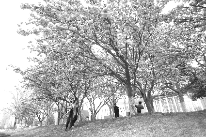 25日,在烟台市区南大街,路边十余株灿烂盛开的樱花树吸引了不少路过的市民驻足、拍照。眼下,樱花进入盛花期,微风轻抚后,樱花落英缤纷的景色让路人不舍离去。