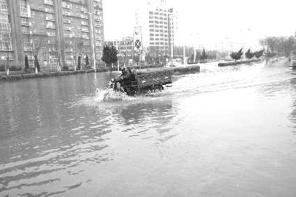 凌晨4点50分,记者来到位于开发区珠江路与衡山路路口,珠江路上数百米的路段存有积水,清澈的自来水从路边的一个地下井口喷涌而出。路边的一辆三轮车上放着手电、钳子和开井盖的工具,几名自来水公司的工作人员正在不远处关阀门。记者发现,珠江路旁边的嵩山路、香山路也有不同程度的积水,不少骑三轮车、自行车、摩托车的行人纷纷选择绕行,也有一些市民冒险穿过积水区。5点20分,冒水的地下井盖停止了喷涌,强大的冲击力形成一个直径约5米,深约2米的大坑。路上积水开始慢慢减少。