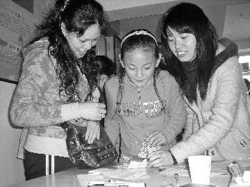 24日上午,山大(威海)支教志愿服务队走进环翠楼街道办事处布谷夼、鸿武、同德社区,义务为社区学生支教,他们将和社区建立长期联系,定期为社区孩子们提供免费家教服务。这是山大(威海)翻译学院志愿者“晴天行动”的首站,图为志愿者(右一)和家长、学生交流教育方法。