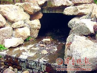 记者顺着临沂路往沙墩河下游走,来到海曲路香樟花园小区西面的沙墩河段,发现河内有不少水泥制的排水口,有些排水口不断有“细流”排入河内。从这里排出的污水呈黄绿色,流量不是很大,但气味却很刺鼻。