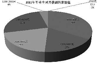 2011年毕业生对月薪酬的期望值。 本报记者 侯书楠 绘制