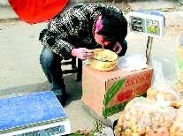 拍摄时间:1月23日拍摄地点:农村集市作品描述:这位大嫂卖菜过秤,吃饭也不马虎,照样放在秤上“计量”进食,哈哈!作者:侯建平奖金:20元