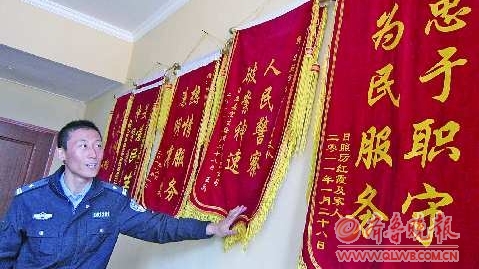 丁健的同事告诉记者,办公室里挂着的锦旗全是丁健巡逻时发现嫌疑人并将其抓获后受害人送的,巡逻防控是丁健最擅长的技能。